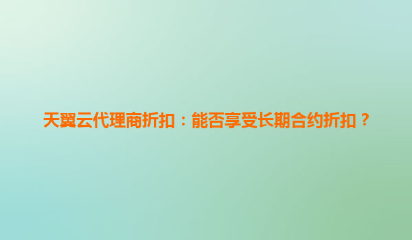 天翼云代理商长期合约折扣解析:解锁可持续成本优势