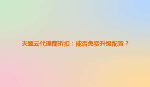 天翼云代理商折扣解析:能否免费升级配置?