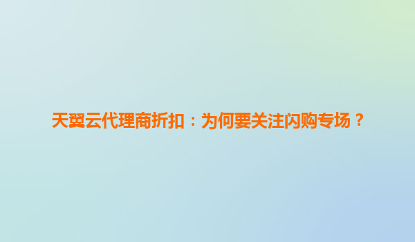 天翼云代理商折扣:为何要关注闪购专场?