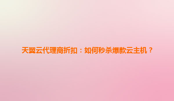 天翼云代理商折扣:如何秒杀爆款云主机?