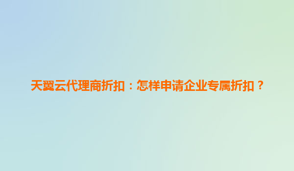 天翼云代理商折扣:企业如何申请专属优惠,最大化云服务价值