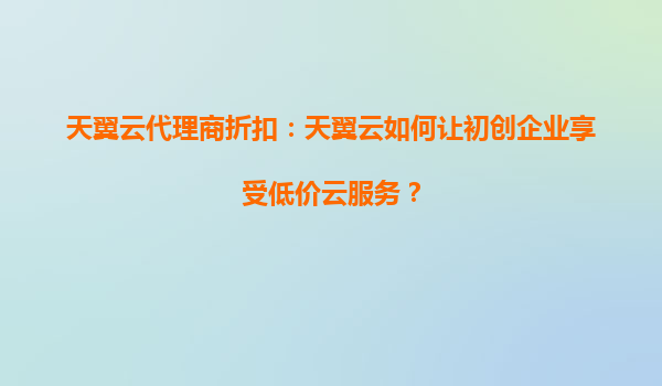 天翼云代理商折扣:初创企业如何享受高性价比云服务