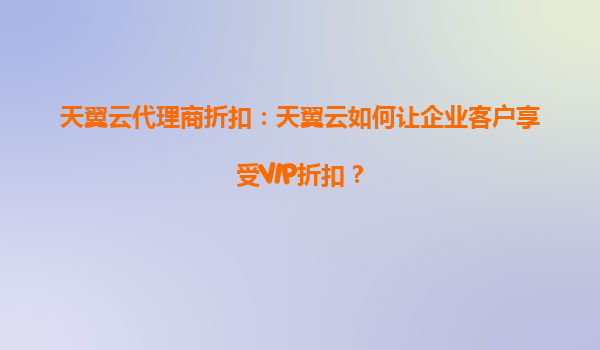 天翼云代理商体系:企业客户获取VIP折扣的智慧之选