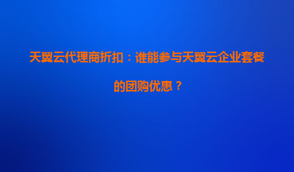 天翼云代理商折扣:谁能参与天翼云企业套餐的团购优惠?