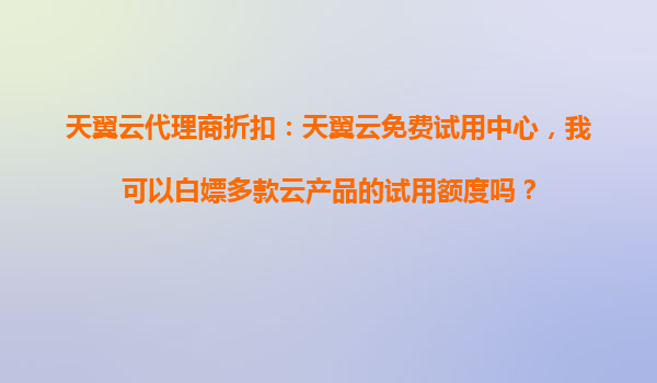 天翼云代理商折扣:如何通过免费试用中心“白嫖”多款云产品?