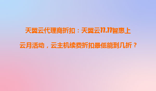 天翼云11.11智惠上云月活动:云主机续费折扣深度解析