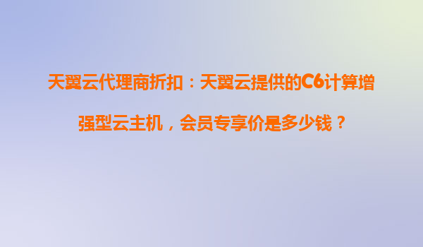 天翼云代理商折扣分析报告:C6计算增强型云主机会员专享价详解
