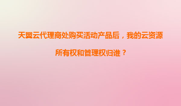 2025-11-04天翼云代理商处购买活动产品后,云资源所有权和管理权解析 一、核心问题:所有权与管理权归属 通过天翼云代理商购买活动产品后,用户最关心的问题莫过于云资源的所有权和管理权归属。需明确的是: ...