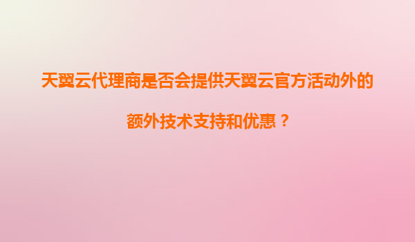 2025-11-04天翼云代理商是否会提供天翼云官方活动外的额外技术支持和优惠? 随着云计算技术的快速普及,越来越多的企业开始将业务迁移到云端。作为国内领先的云服务提供商,天翼云凭借其强大的技术实力和优质的服务,...