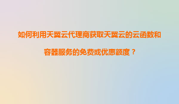 2025-11-04如何利用天翼云代理商获取天翼云的云函数和容器服务的免费或优惠额度? 一、天翼云的优势及其云函数、容器服务简介 天翼云是中国电信旗下的云计算服务品牌,凭借中国电信强大的基础设施和全国覆盖的网...