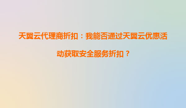 天翼云代理商折扣:我能否通过天翼云优惠活动获取安全服务折扣? 一、天翼云代理商折扣政策概述 天翼云作为中国电信旗下的云计算品牌,一直以来都以高性能、高安全性著称。为了更好地服务企业...
