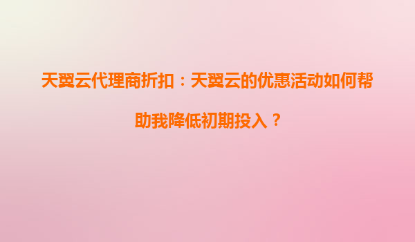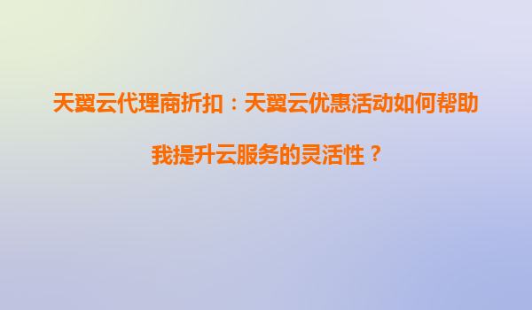 2025-09-16天翼云代理商折扣:天翼云优惠活动如何帮助提升云服务的灵活性 引言 随着数字化转型的加速,企业对云计算的需求日益增长。天翼云作为中国电信旗下的云计算品牌,凭借其强大的基础设施和优...