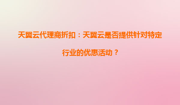 2025-09-16天翼云代理商折扣:如何通过活动享受定制化服务优惠? 一、了解天翼云的核心优势 作为中国电信旗下云计算品牌,天翼云凭借央企背景和强大的技术实力,为用户提供稳定、安全、高效的云服务。其全国分布式数据中...