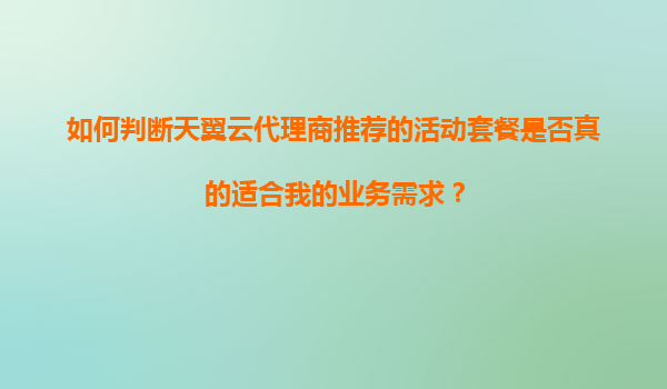 2025-11-04如何判断天翼云代理商推荐的活动套餐是否适合我的业务需求? 引言 在当前数字化快速发展的时代,云计算已成为企业数字化转型的重要基础设施。天翼云作为中国电信旗下的云计算品牌,凭借其强大的技术实力和...
