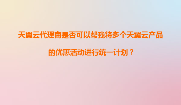 2025-11-04天翼云代理商如何帮助您统一规划多产品优惠方案? 一、天翼云多产品优惠活动的现状与挑战 天翼云作为中国电信旗下的云计算服务品牌,提供从基础计算、存储到大数据、AI的丰富产品线。企业...