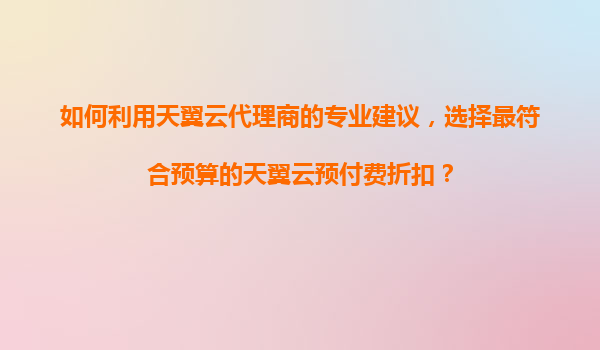 如何利用天翼云代理商的专业建议,选择最符合预算的天翼云预付费折扣? 一、了解天翼云预付费模式的核心优势 天翼云的预付费服务(如包年包月)通常提供显著的折扣优惠,长期使用成本比按量付...
