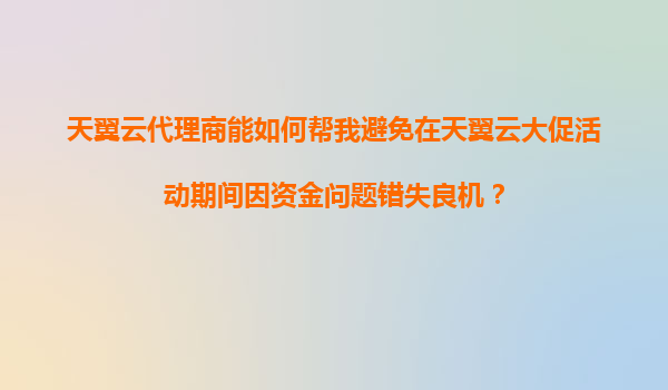 2025-11-04天翼云代理商如何帮助您在大促期间避免资金问题,抓住商机? 引言:大促活动的机遇与挑战 天翼云作为中国电信旗下的云计算服务品牌,每年都会推出多次大促活动,为企业...