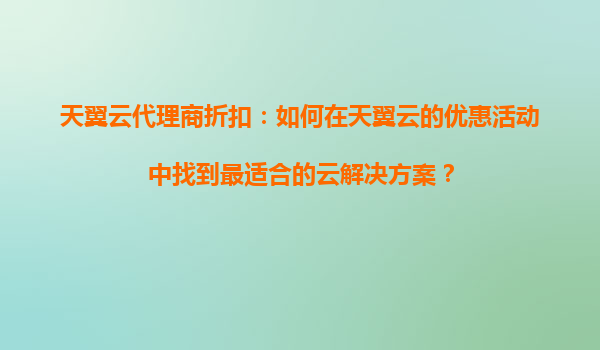 2025-09-16天翼云代理商折扣:如何利用天翼云的优惠活动提升云资源的利用率? 一、天翼云的核心优势与代理商模式价值 天翼云作为中国电信旗下云计算服务品牌,凭借央企背景和全国覆盖的基础设施网络,在资源...