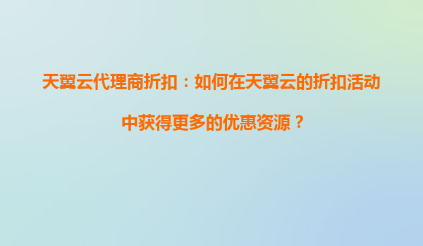 2025-09-16天翼云代理商折扣:如何在天翼云的折扣活动中获得更多的优惠资源? 一、天翼云的核心优势 天翼云是中国电信旗下的云计算品牌,凭借其强大的技术实力和资源整合能力,已成为国内云计算市...