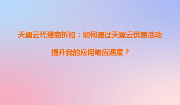2025-09-16天翼云代理商折扣:如何通过天翼云优惠活动提升我的应用响应速度? 一、应用响应速度的关键:云计算资源优化 在数字化时代,应用的响应速度直接影响用户体验和业务转化率。无论是电商平...