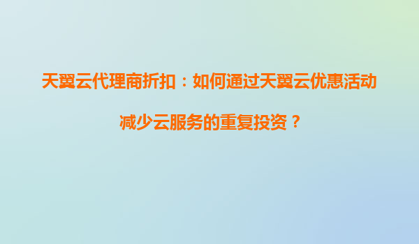 2025-09-06天翼云代理商折扣:如何通过优惠活动减少云服务重复投资 云端成本控制的迫切需求 在数字化转型浪潮中,企业上云已成必然选择。但许多企业在云资源采购过程中常面临重复投资、资源浪费等问题——不...