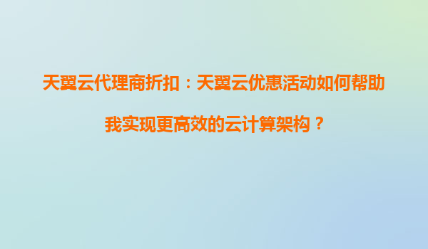 2025-09-06天翼云代理商折扣:如何通过天翼云的优惠活动优化我的云应用部署? 一、天翼云的核心优势与代理商折扣价值 天翼云作为中国电信旗下的云计算服务品牌,凭借其央企背景和全国覆盖的网络基础设施,为用户提供...