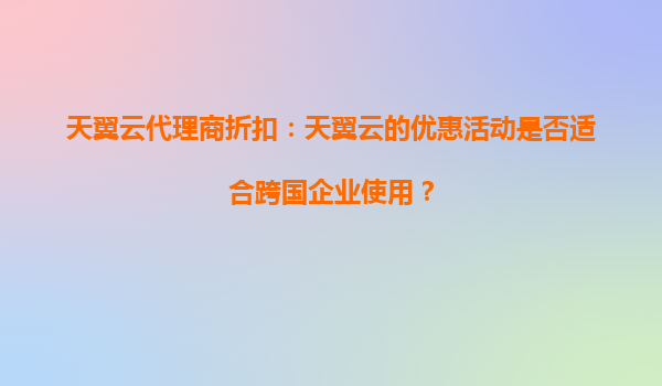 2025-09-04天翼云代理商折扣:天翼云的优惠活动是否适合跨国企业使用? 一、天翼云的核心优势概览 作为中国电信旗下的云计算品牌,天翼云凭借以下优势成为国内头部云服务商: 央企背景...