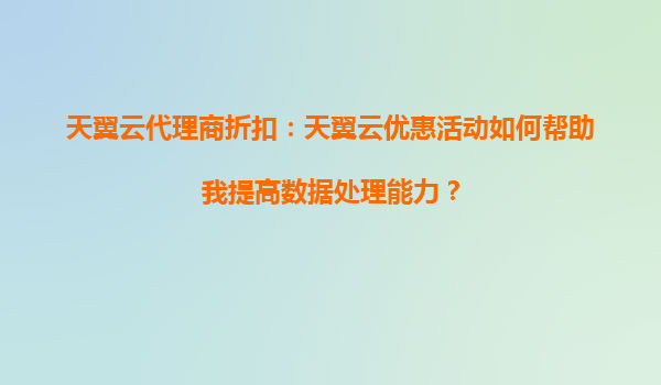 2025-09-04天翼云代理商折扣:如何通过天翼云优惠活动提升数据处理能力 在当今数据驱动的商业环境中,高效的数据处理能力是企业竞争力的核心。无论是存储大量数据、快速分析信息,还是确保数据安全,企业都需要...