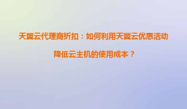 2025-09-04天翼云代理商折扣:如何利用天翼云优惠活动降低云主机的使用成本? 一、天翼云及其优势概述 天翼云是中国电信旗下的云计算服务品牌,依托电信强大的网络基础设施和丰富的资源池,为企业及个人...