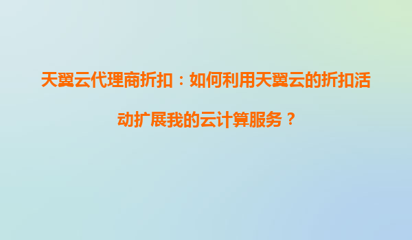 2025-09-04天翼云代理商折扣:如何利用天翼云的折扣活动扩展我的云计算服务? 天翼云的优势概述 天翼云作为中国电信旗下的云计算服务品牌,凭借其强大的网络资源和技术实力,为用户提供高性能...