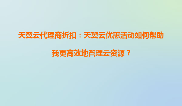 2025-09-04天翼云代理商折扣:天翼云优惠活动如何帮助我更高效地管理云资源? 一、天翼云的核心优势 天翼云作为中国电信旗下的云计算服务品牌,凭借其强大的基础设施和资源整合能力,在云服务市场中占据重要地位。其...