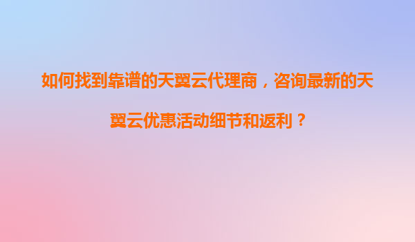2025-11-03如何找到靠谱的天翼云代理商,获取最新优惠活动细节和返利政策 一、天翼云的市场优势解析 作为中国电信旗下的云计算品牌,天翼云凭借以下核心优势成为企业数字化转型的重要选择: 央企背景保障安全:通过国家...