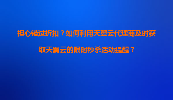 2025-11-03担心错过折扣?如何利用天翼云代理商及时获取天翼云的限时秒杀活动提醒? 一、天翼云限时秒杀活动的价值与优势 天翼云作为中国电信旗下的云计算品牌,凭借其安全可靠、高效稳定的云服务,已成为企业数...