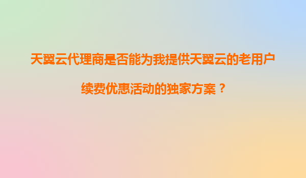 2025-11-04天翼云代理商能否提供老用户续费优惠的独家方案?深度解析天翼云优势与代理服务价值 一、天翼云代理商的核心价值 天翼云官方授权代理商是企业用户获取云计算服务的重要...