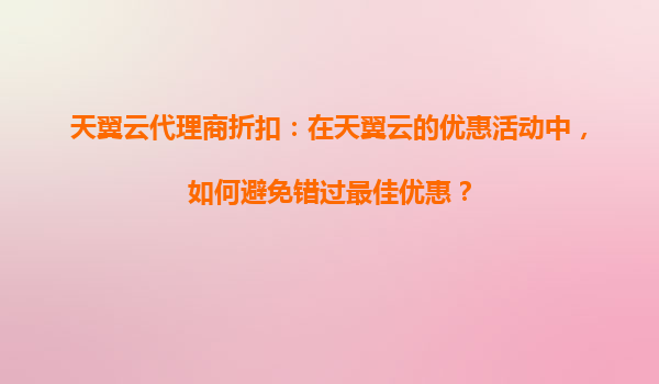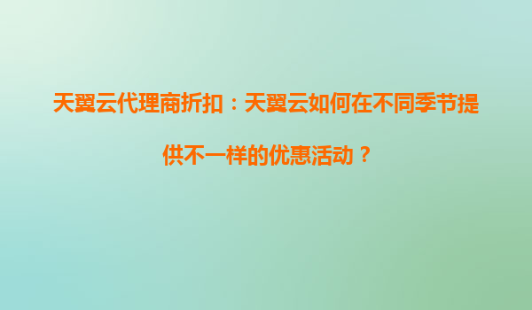 天翼云代理商折扣:天翼云如何在不同季节提供不一样的优惠活动? 一、天翼云的资源优势与市场定位 作为中国电信旗下云计算品牌,天翼云凭借运营商级基础设施和覆盖全国的节点网络,在安全性、稳定性及本土化服务方...