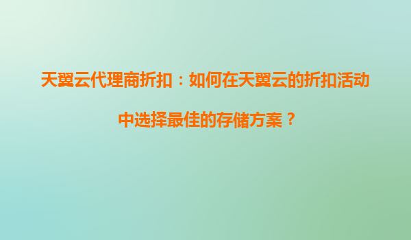 2025-09-03天翼云代理商折扣:如何在天翼云的折扣活动中选择最佳的存储方案? 一、天翼云的核心优势 在选择云存储服务时,天翼云作为中国电信旗下的云计算品牌,具备以下显著优势...