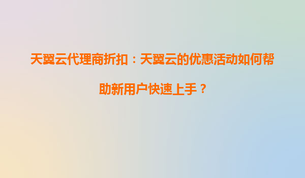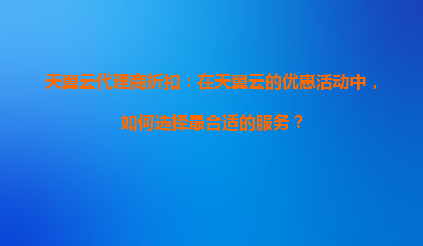 2025-09-02天翼云代理商折扣:优惠活动的常见使用限制解析 天翼云的代理商折扣政策概述 作为中国电信旗下的云计算服务商,天翼云凭借其强大的基础设施和稳定的网络服务,在云计算市场占据了重要地位。为吸引更多...