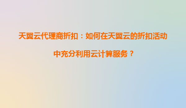 天翼云代理商折扣:如何在天翼云的折扣活动中充分利用云计算服务? 引言 随着云计算技术的快速发展,越来越多的企业和个人开始将其业务和项目迁移到云端。天翼云作为中国领先的云计...