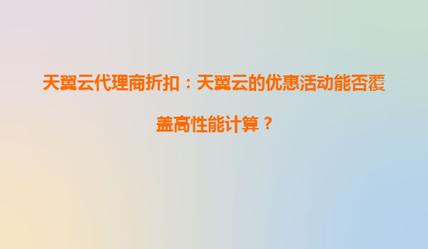 2025-08-31天翼云代理商折扣:天翼云的优惠活动能否覆盖高性能计算? 一、天翼云在高性能计算领域的核心优势 天翼云作为中国电信旗下的云计算服务品牌,凭借其强大的基础设施和资源整合能力,在高性能计算(HPC)领域...