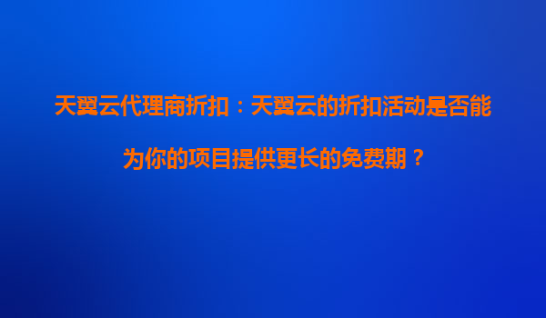 天翼云代理商折扣:如何为你的项目争取更长免费期? 一、天翼云的核心优势 作为中国电信旗下的云计算品牌,天翼云凭借以下优势成为企业上云的热门选择: ...