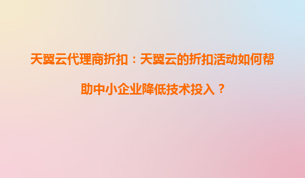 2025-08-28天翼云代理商折扣:如何助力中小企业降低技术投入? 引言 在数字化转型的浪潮中,云计算已成为中小企业提升效率、优化成本的核心工具。然而,高昂的技术投入往...