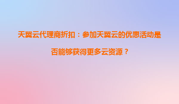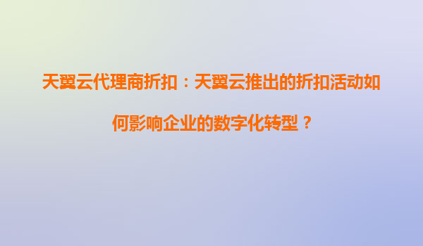 2025-08-26天翼云代理商折扣:天翼云的优惠活动是否适合长期使用的企业客户? 引言 随着数字化转型的加速,越来越多的企业开始将业务迁移到云端。天翼云作为中国电信旗下的云计算服务品牌,凭借其强大的基础设施和丰...
