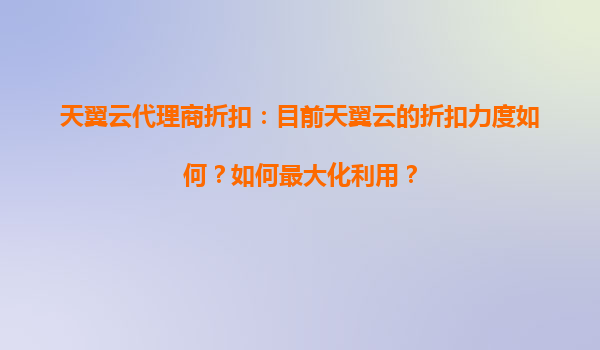 2025-08-26天翼云代理商折扣:当前折扣力度分析与最大化利用策略 一、天翼云当前代理商折扣力度分析 天翼云作为中国电信旗下的云计算服务品牌,近年来通过代理商渠道持续推出阶梯式折扣政策。根据2023年最新市场...