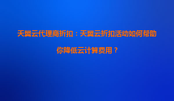 2025-08-26天翼云代理商折扣:如何通过天翼云折扣活动降低云计算费用? 一、云计算成本挑战与天翼云的解决方案 随着企业数字化转型加速,云计算已成为基础设施的核心组成部分。然...