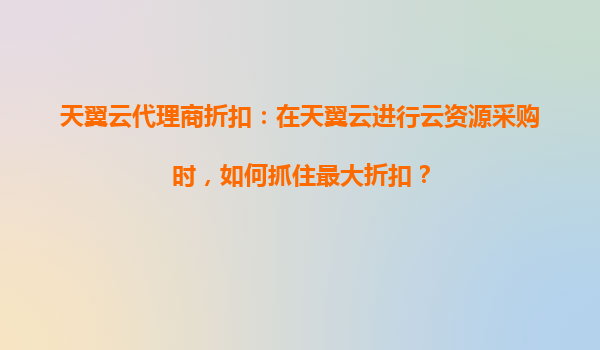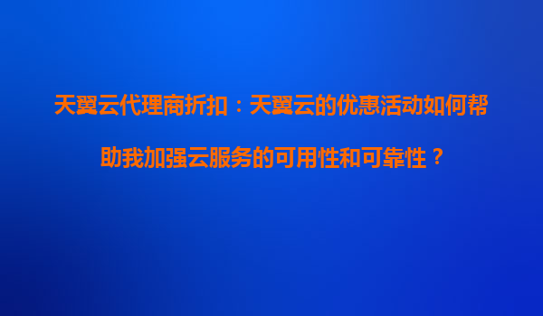 2025-08-25天翼云代理商折扣:如何利用天翼云的优惠活动,快速启动项目? 一、天翼云的核心优势与代理商价值 天翼云作为中国电信旗下云计算品牌,凭借央企背景和全国覆盖的基础设施,提供稳定、安全、高性能的云服务...