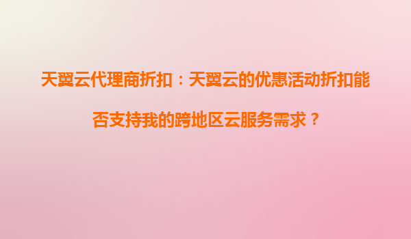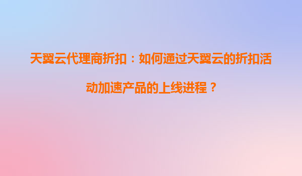 2025-08-23天翼云代理商折扣:如何通过天翼云的折扣活动加速产品的上线进程? 引言 在当今数字化时代,云计算已成为企业快速部署和扩展业务的核心基础设施。天翼云作为中...