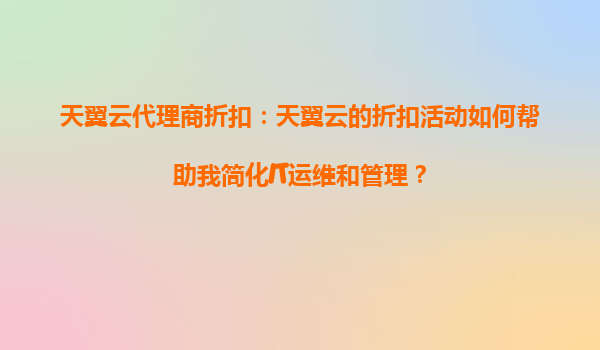2025-08-24天翼云代理商折扣:如何通过天翼云折扣活动简化IT运维与管理 在数字化转型的浪潮中,企业IT运维和管理的复杂性与日俱增。如何高效、低成本地实现资源管理、安全防护和业务扩展,成为许多企业面临的挑战。天翼云...
