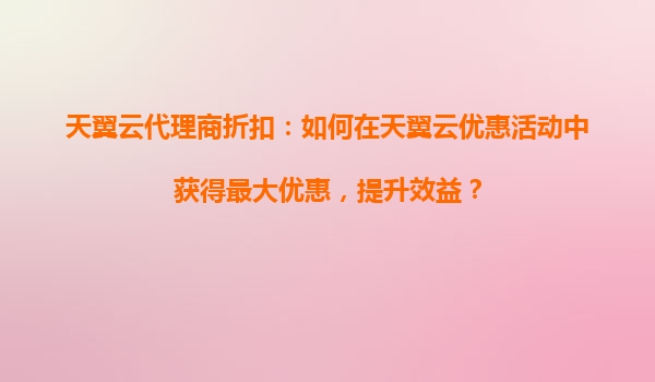 天翼云代理商折扣:如何在天翼云优惠活动中获得最大优惠,提升效益? 一、天翼云的核心优势与代理商价值 作为中国电信旗下云计算品牌,天翼云凭借央企背景和全国资源布局,在基础设施、安全合规、本地化服务等...