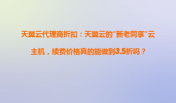 2025-10-31天翼云代理商折扣:天翼云“新老同享”云主机,续费价格真的能做到3.5折吗? 引言 随着云计算市场的快速发展,越来越多的企业开始关注云服务的性价比。天翼云作为中国电信旗下的云计算品牌,凭借其强...
