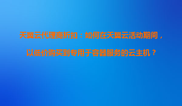 2025-11-01天翼云代理商折扣:如何在天翼云活动期间,以低价购买专用于容器服务的云主机? 一、天翼云容器服务与云主机的核心价值 天翼云作为中国电信旗下云计算品牌,为容器化应用提供高性能、弹性的云主机服务。...